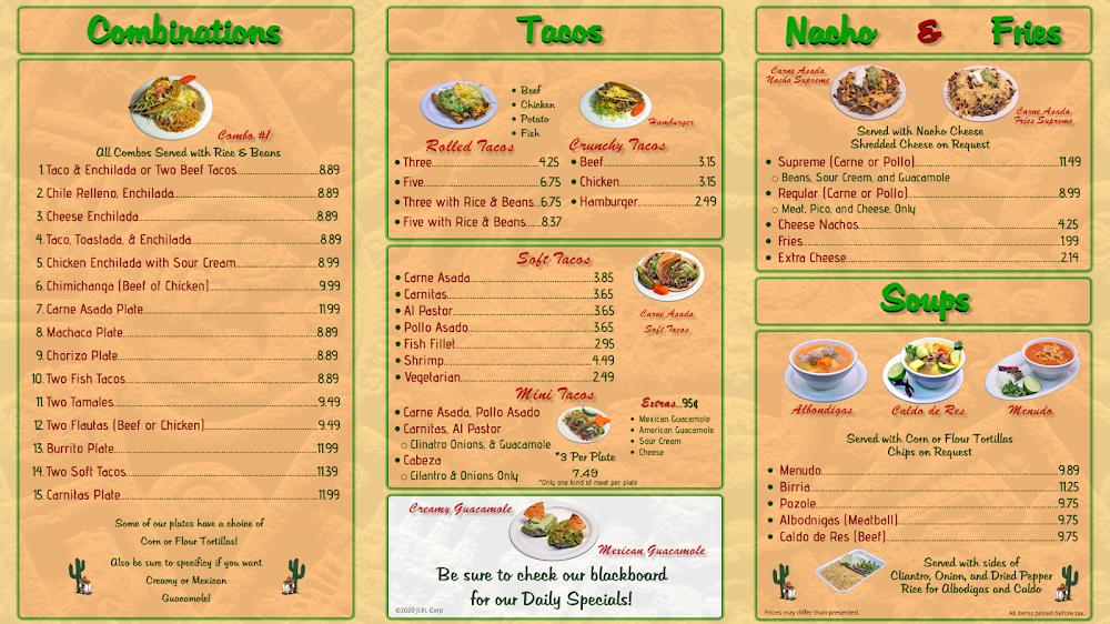 The breakfast menu boasts several burrito choices, perfect for morning cravings. For those seeking lighter fare, tostadas and quesadillas entice. The dessert selection showcases sweet treats like flan to wrap up the meal perfectly. With 91 different items, there's always something new to try.